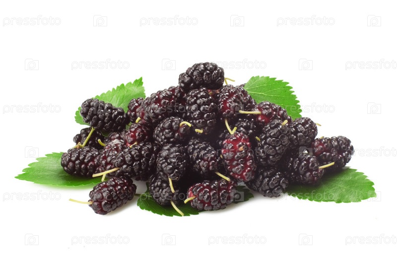 Плоды тута с листьями. Изолировано на белом фоне
