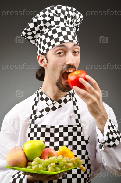 Повар ест фрукты