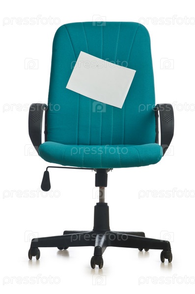 Офисный стул с листом бумаги, изолирован на белом фоне
