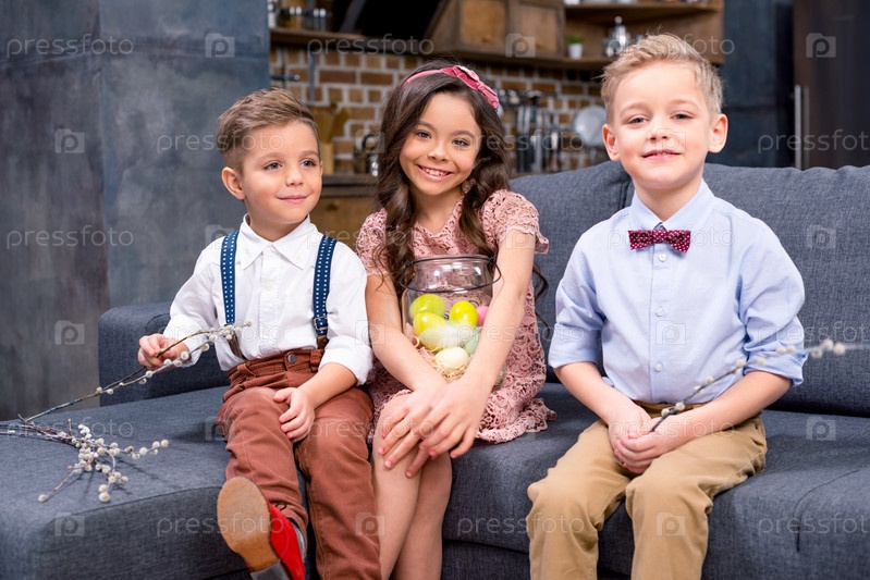 Дети с пасхальными яйцами