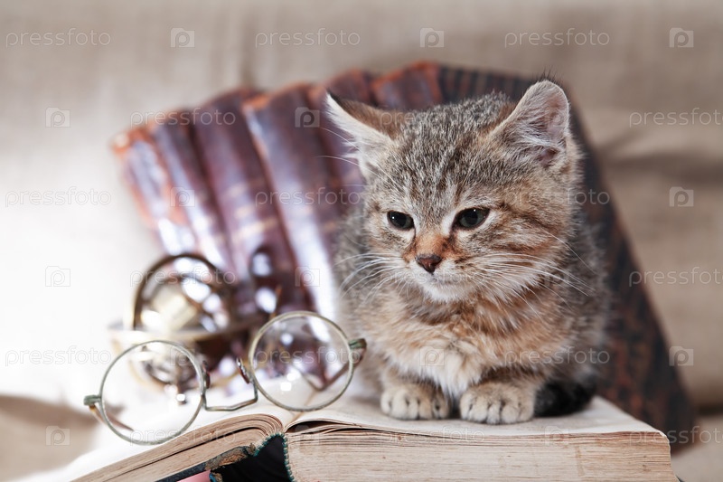 Котенок, книга и очки