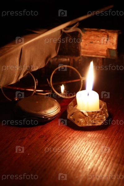 Свечка, очки и книги