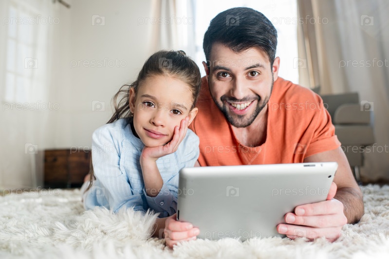 Отец и дочь с планшетом