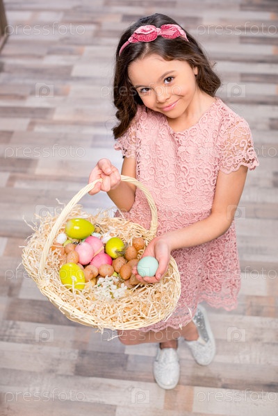 Маленькая девочка с пасхальными яйцами