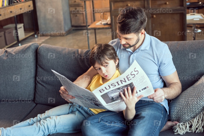 Отец и сын с газетой