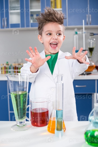 Мальчик в химической лаборатории
