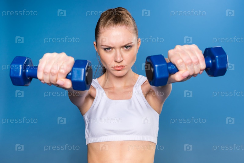Девушка с гантелями