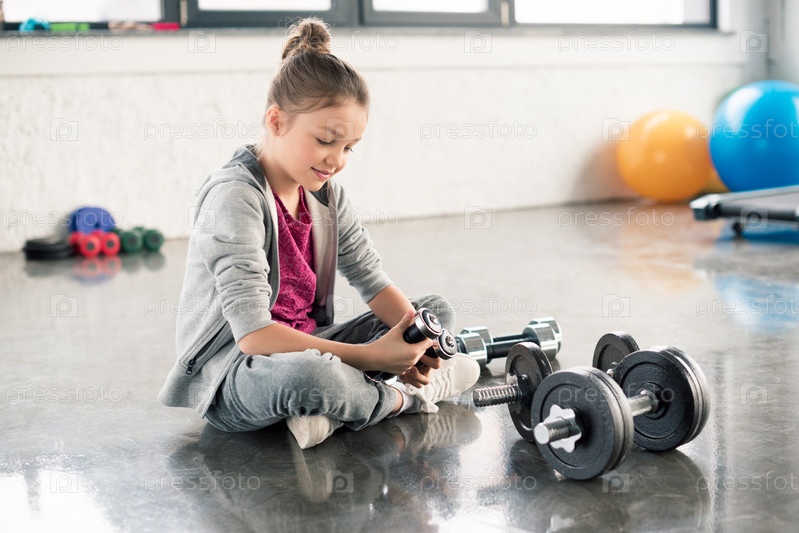 Девочка с гантелями