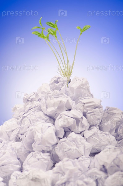 Зеленые саженцы, растущие из бумаги