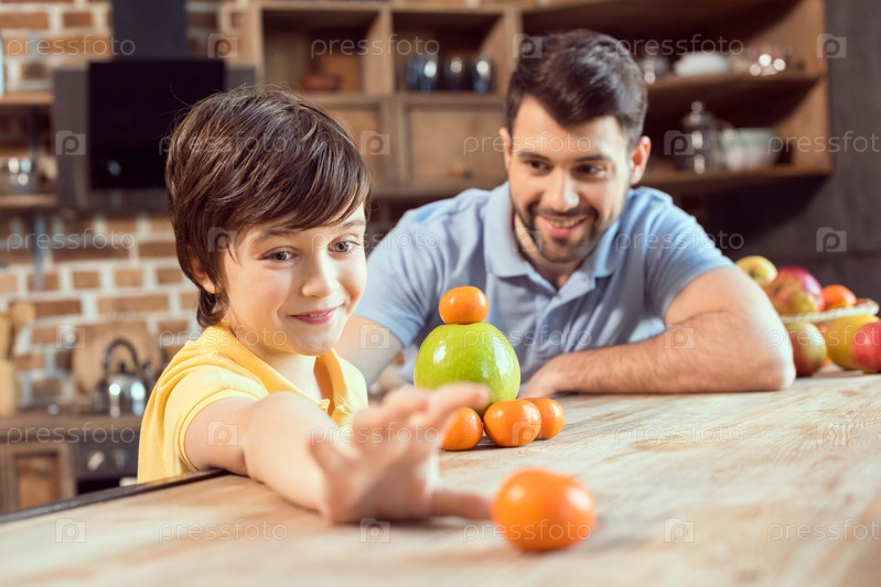 Отец и сын с фруктами