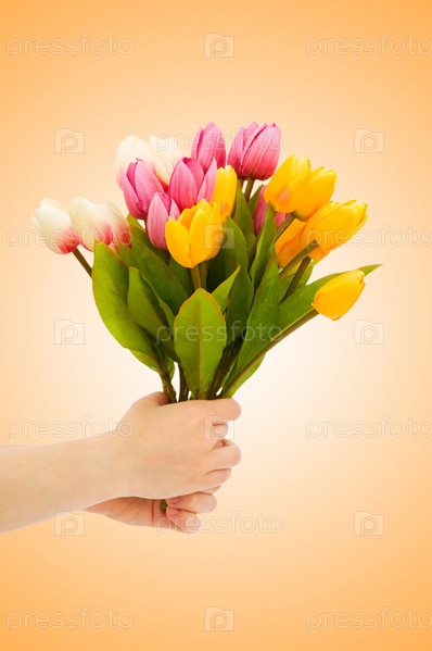 Рука с тюльпанами