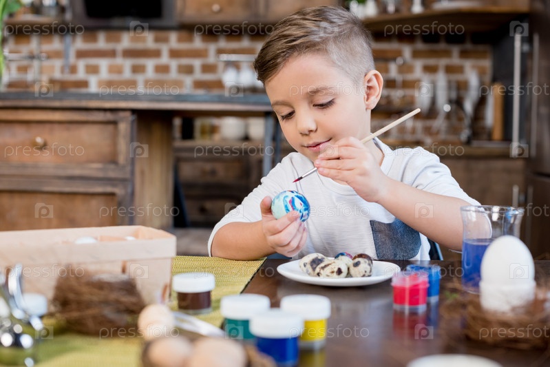 Мальчик красит яйца