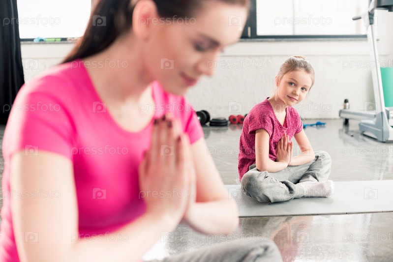 Мать и дочь занимаются йогой
