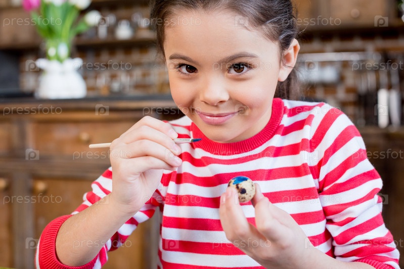 Девочка раскрашивает пасхальное яйцо