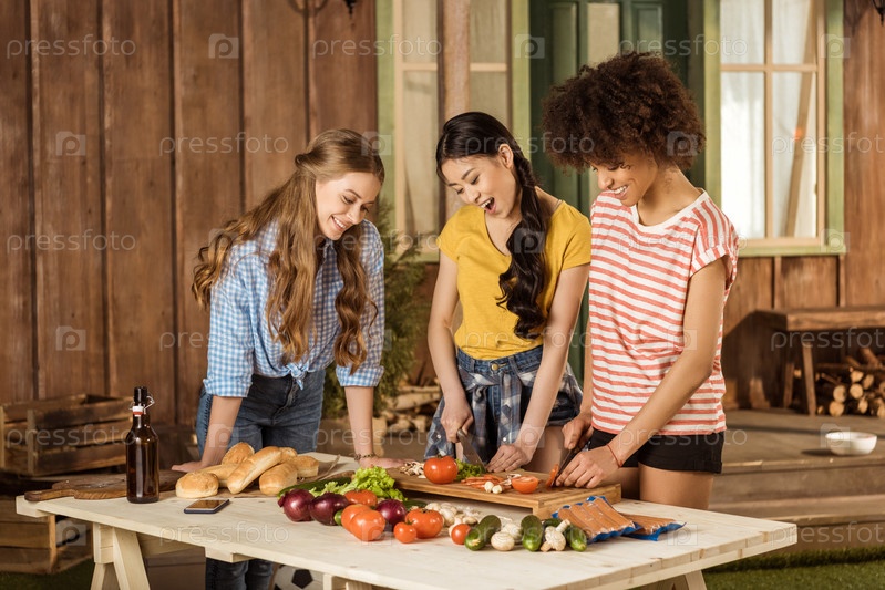Девушки делают салат
