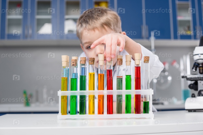 Маленький мальчик в химической лаборатории