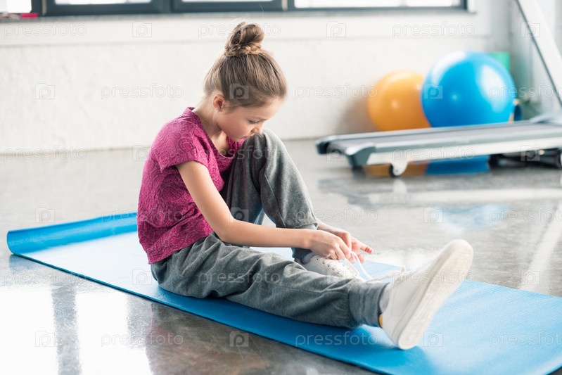 Девочка завязывает шнурки