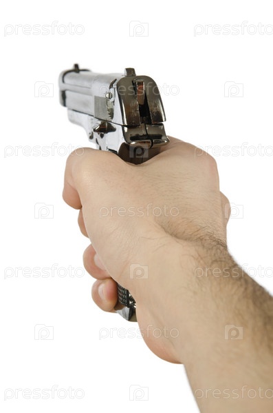 Пистолет в руке на белом фоне