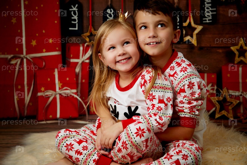 Маленькие брат и сестра на Рождество