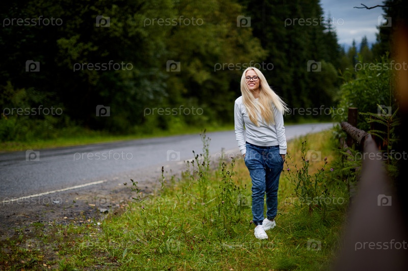 Красивая блондинка в природе