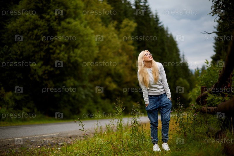 Красивая блондинка у дороги