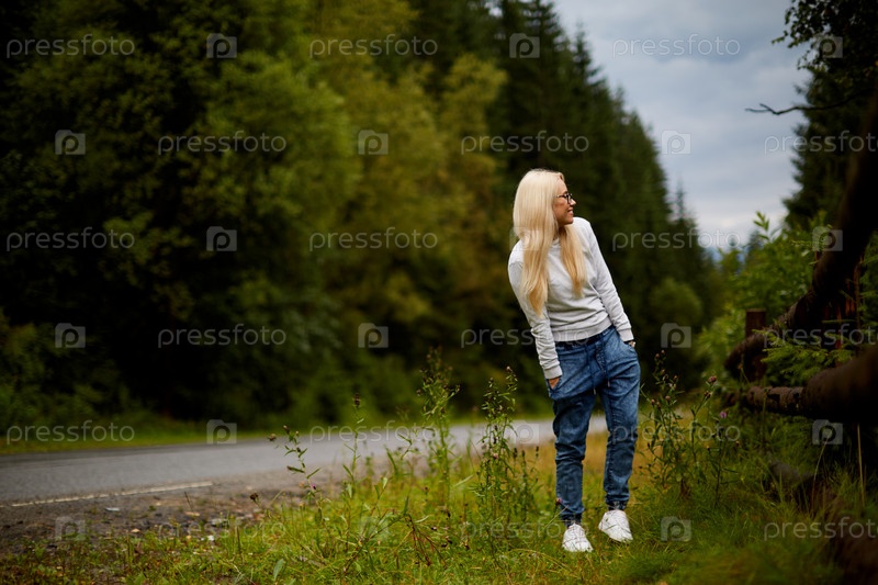 Красивая блондинка у дороги