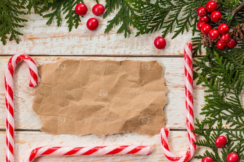 Новогоднее украшение с листом бумаги на деревянном столе