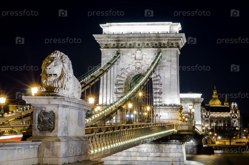 Цепной мост Сечени через реку Дунай в Будапеште, Венгрия