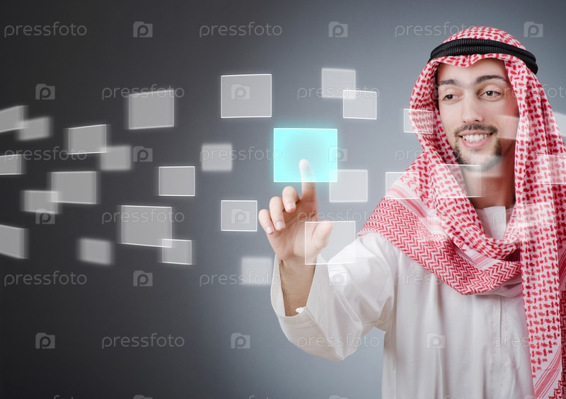 Молодой араб нажимает виртуальные кнопки