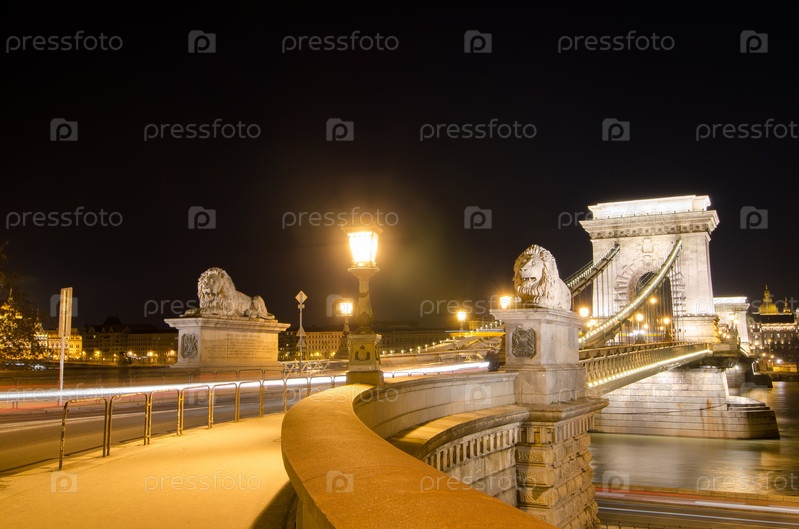 Цепной мост в Будапеште в вечернее время. Достопримечательности в Венгрии