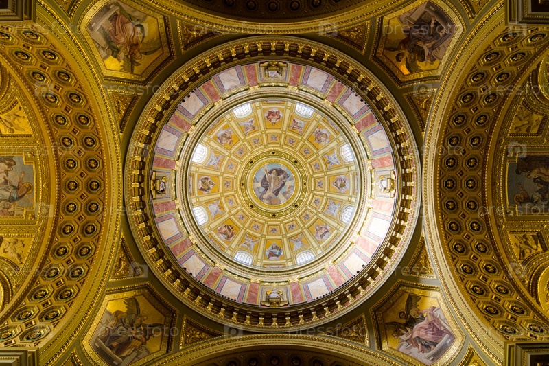 Интерьер купола. Украшенный потолок с фреской и золотом