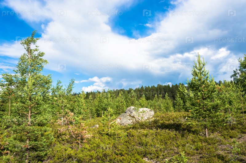 Большие валуны в заповеднике горы Воттоваара, Карелия