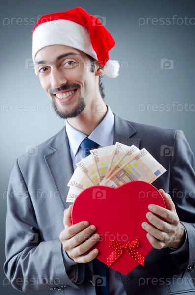Санта-Клаус с банкнотами евро