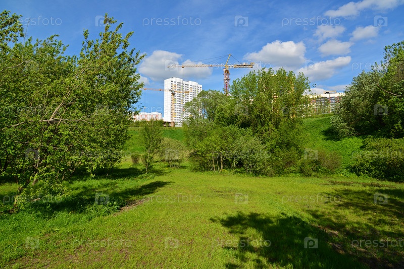 Строительство жилых домов в районе парка в Москве, Россия