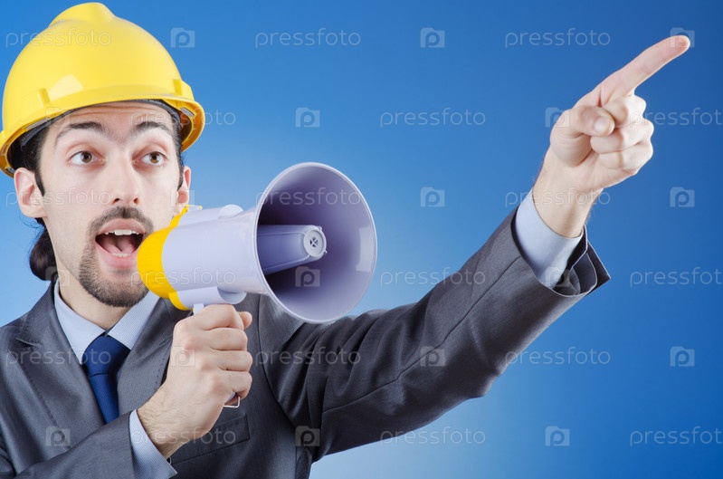 Человек кричит в громкоговоритель