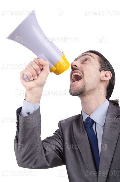 Человек кричит в громкоговоритель