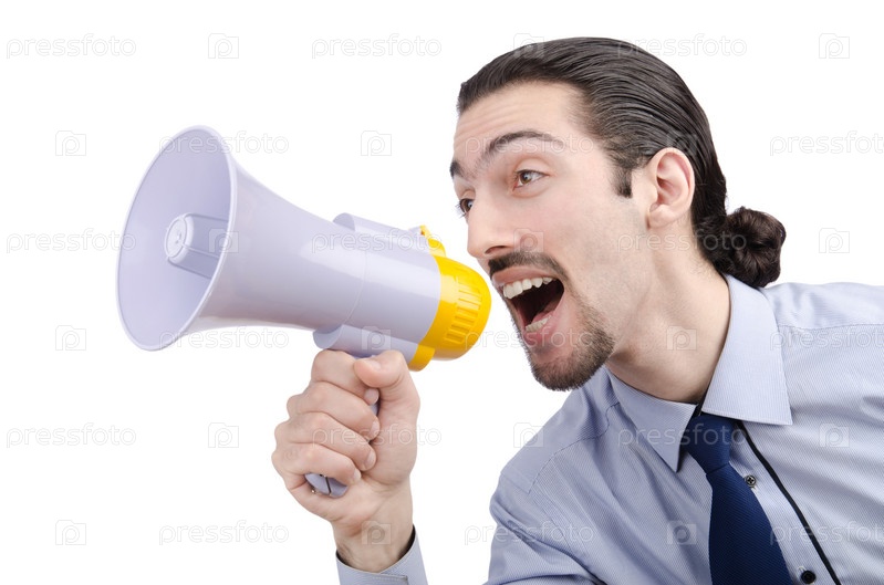 Человек кричит в громкоговоритель