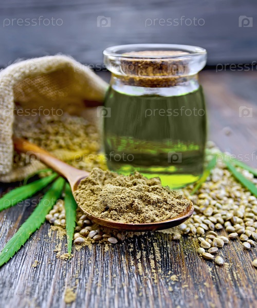 Мука конопляная в ложке с маслом