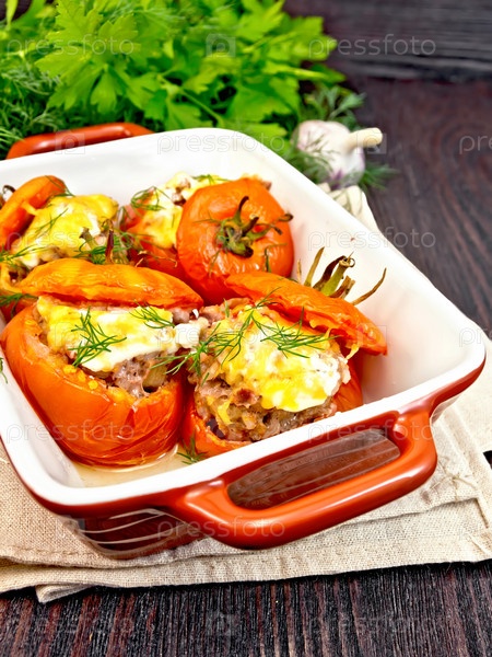 Помидоры фаршированные рисом и мясом в коричневой жаровне