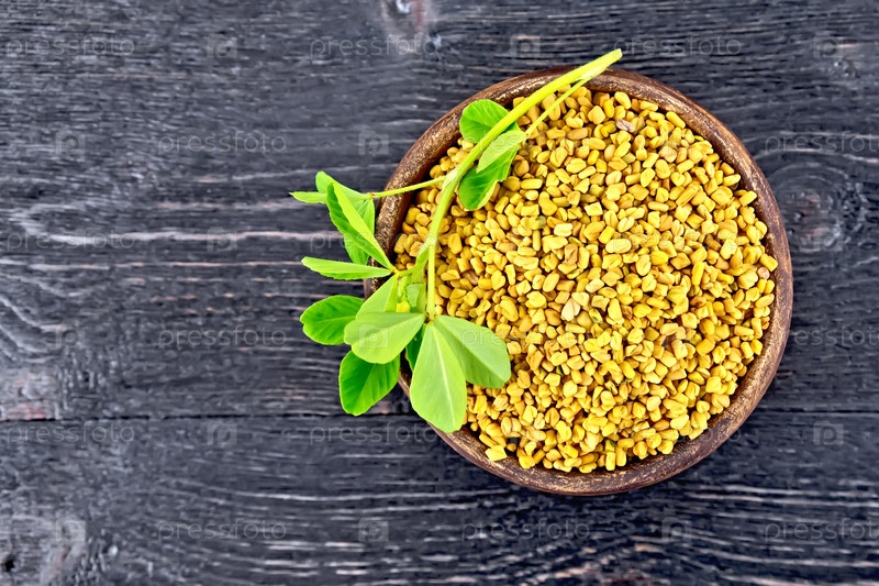 Пажитник с листом в глиняной чаше на доске
