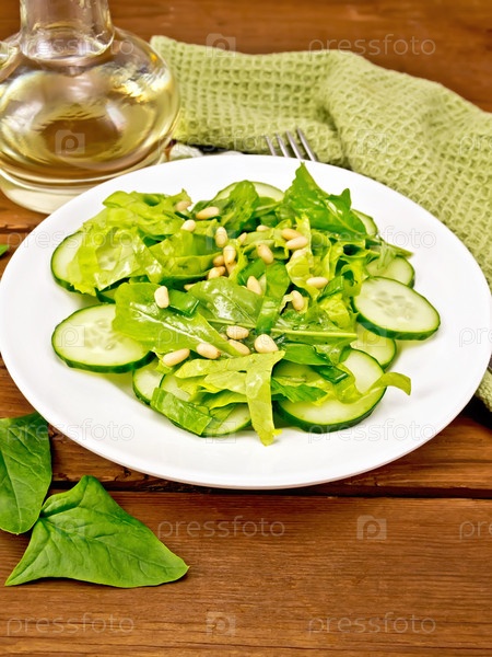 Салат из шпината и огурцов с салфеткой