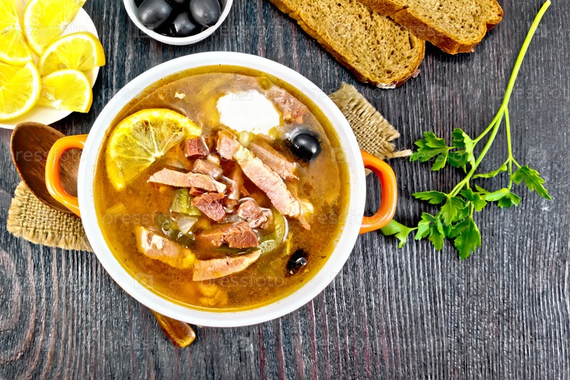Солянка в чаше на доске