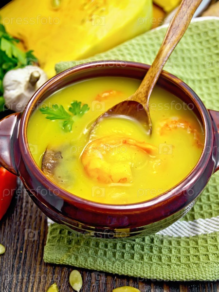 Суп-пюре тыквенный с креветками и шампиньонами