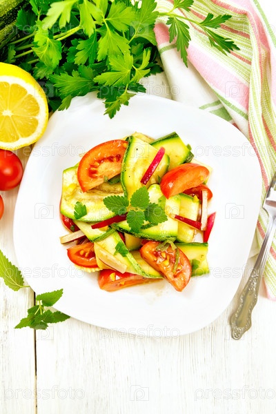 Салат с кабачком и помидором в тарелке