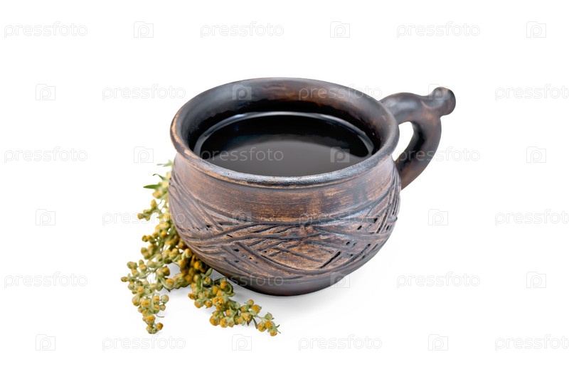 Чай с полынью в глиняной чашке
