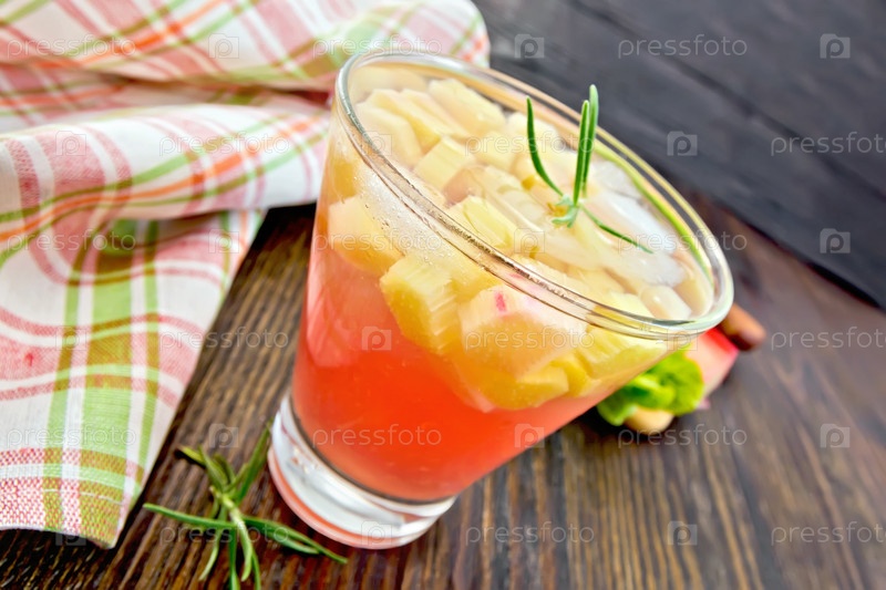 Лимонад с ревенем и розмарином на деревянной доске