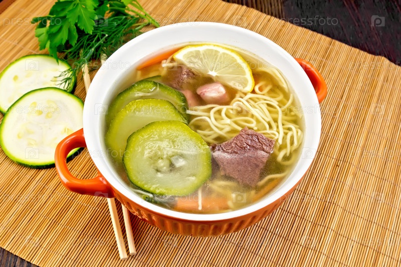 Суп с кабачками и лапшой на бамбуке