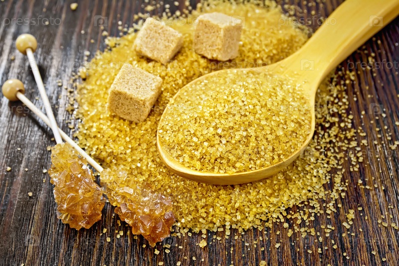 Сахар коричневый в ложке на темной доске