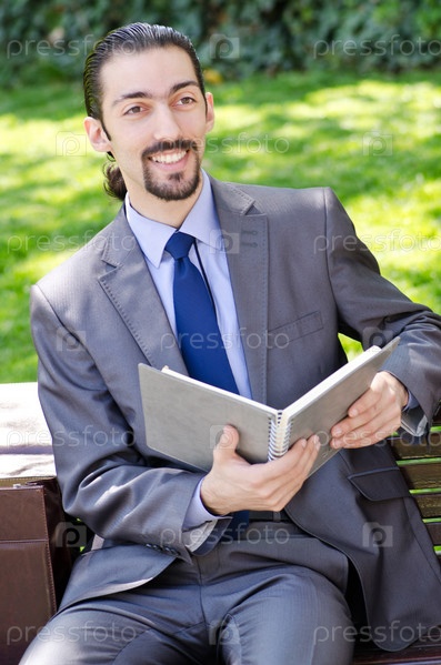 Бизнесмен, сидящий на скамейке