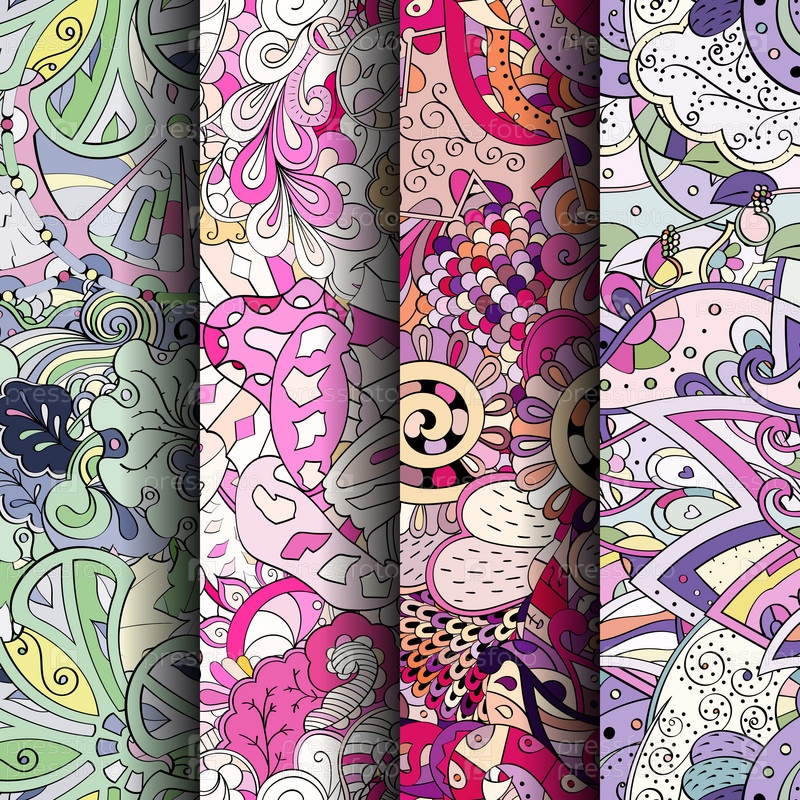 Набор ажурных красочных бесшовных узоров